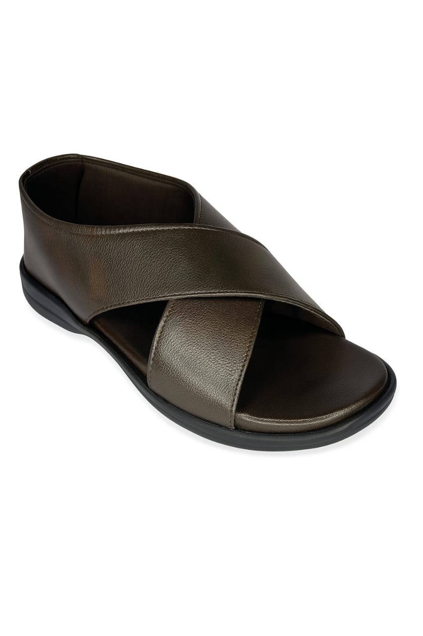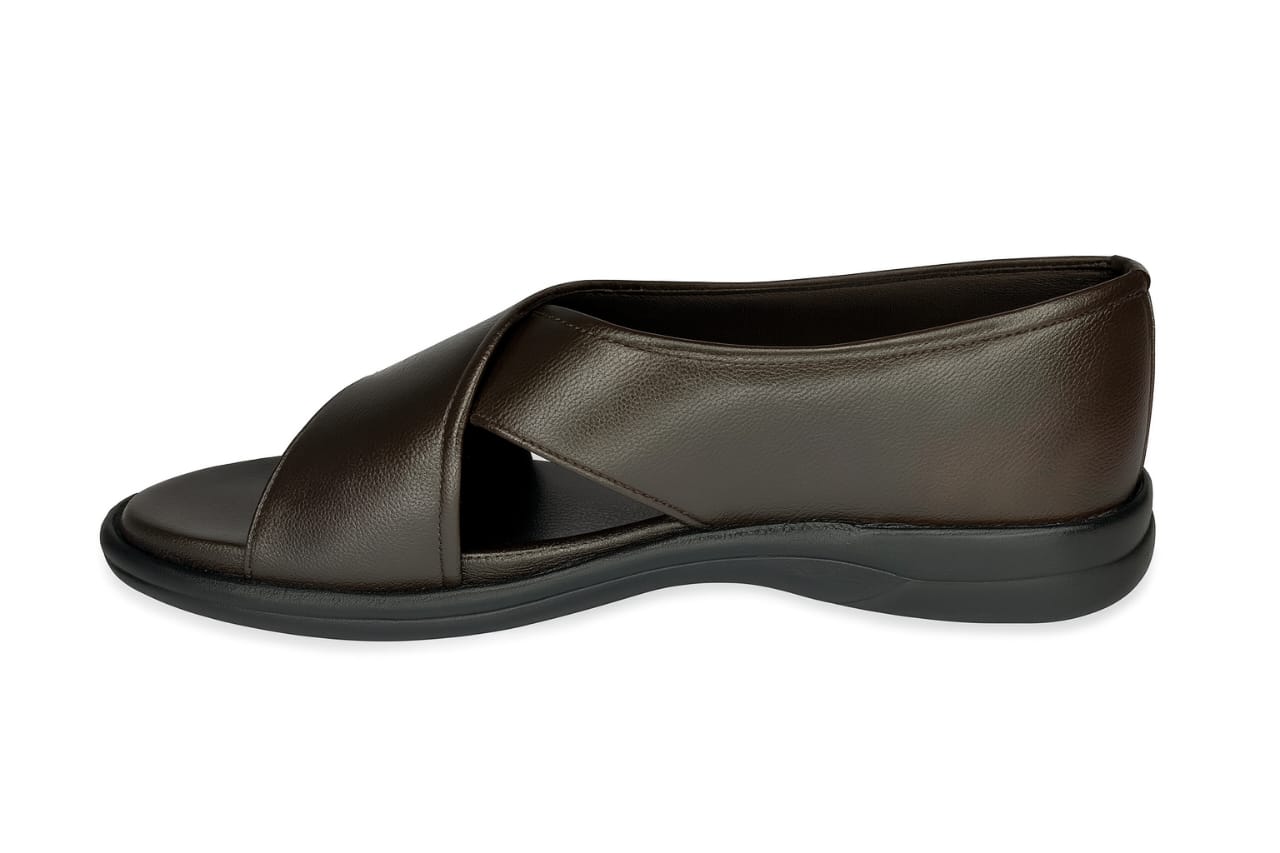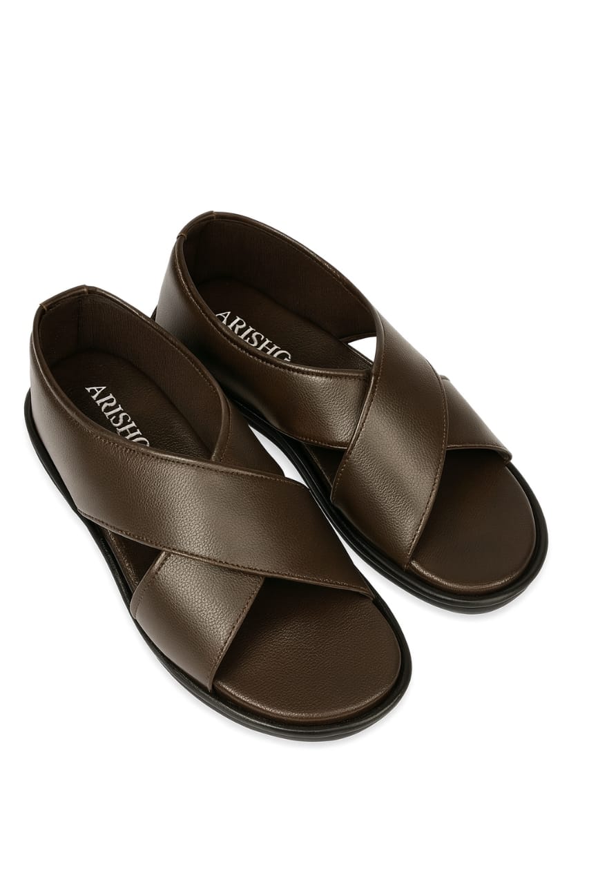 Comfort Cross Strap Sandals, Brown Faux Leather